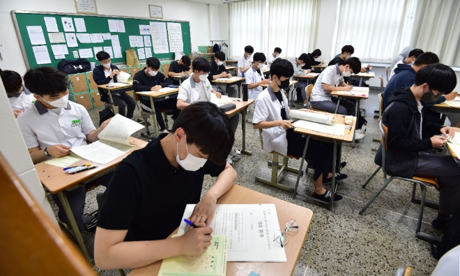 이미지 확대보기뉴시스는 28일 수능 출제기관인 한국교육과정평가원(평가원) 발표를 인용, 전국 2124개 고등학교와 456개 학원 등에서 총 48만9370명이 9월 모의평가를 치를 예정이라고 보도했다.