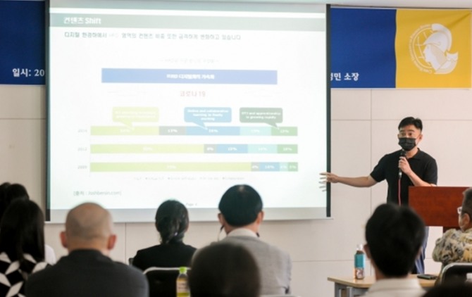 이날 강연을 맡은 홍정민 소장은 에듀테크 전문가로, 이번 특강에서 디지털 전환과 함께 변화하고 다양화되는 온라인 학습 방식과 효과적인 교육 방법을 소개하고 디지털 러닝 시대에 더욱 중요해지는 교육전문가의 역할 등에 대해 전달했다.