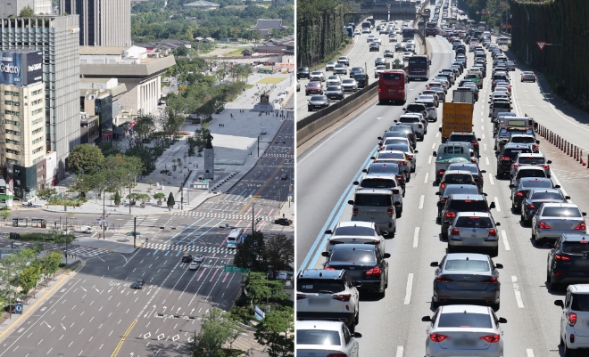이미지 확대보기한국도로공사에 따르면 이날 정오 기준 경부고속도로 부산 방향은 죽전∼수원 9㎞, 오산 부근∼남사 부근 10㎞, 북천안∼목천 19㎞, 옥산 분기점 부근∼옥산 부근 13㎞, 회덕 분기점∼비룡 분기점 10㎞ 등 총 68㎞ 구간에서 밀리고 있다.