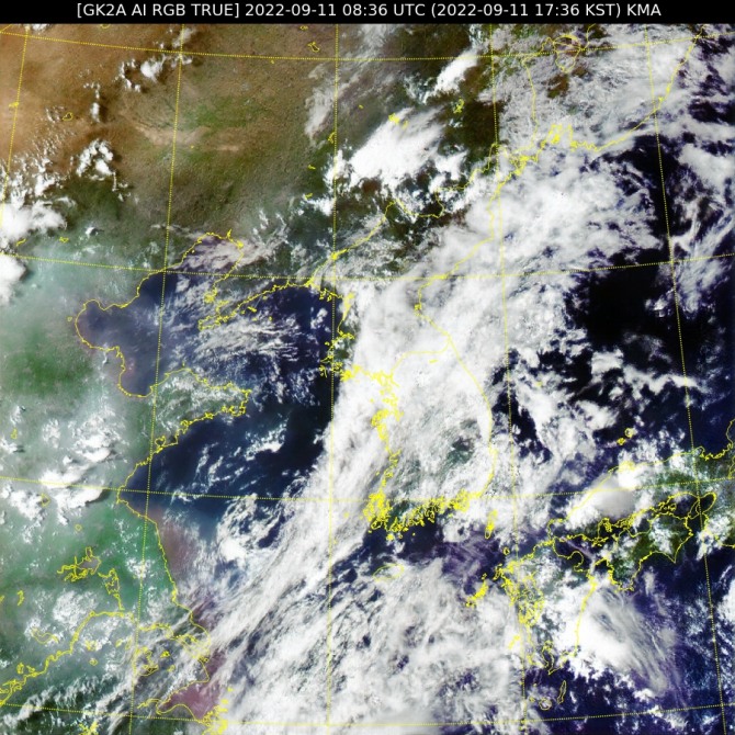 이미지 확대보기기상청은 11일 "기압골의 영향으로 내일(12일) 충청권남부와 남부지방, 제주도에 가끔 비가 오는 곳이 있겠고 강원남부와 충북북부에는 빗방울이 떨어지는 곳이 있겠다"고 예보했다.