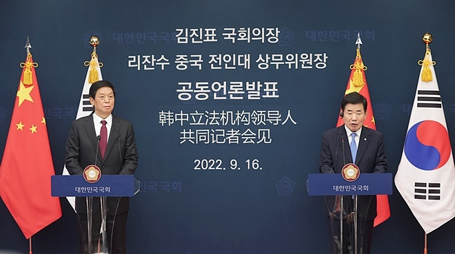 특히 양국 의장은 일본을 포함한 3국 의장회의 개최 가능성을 알렸다. 김 의장이 공식 제안했고, 리 위원장이 진지하게 검토하겠다는 뜻을 밝혔다. 김 의장은 "양국 의회가 동북아 평화·안정을 위해서도 기여해야 한다는 데 인식을 공유했다"면서 "일본 측과도 빠른 시일 내에 적절한 방식으로 소통하고자 한다"고 말했다.