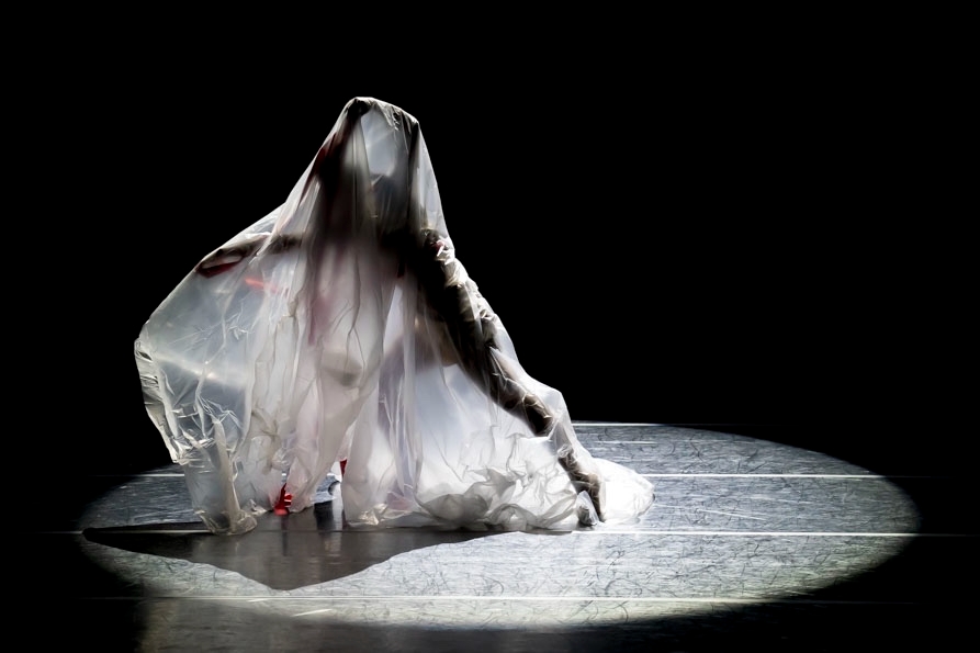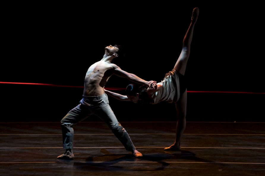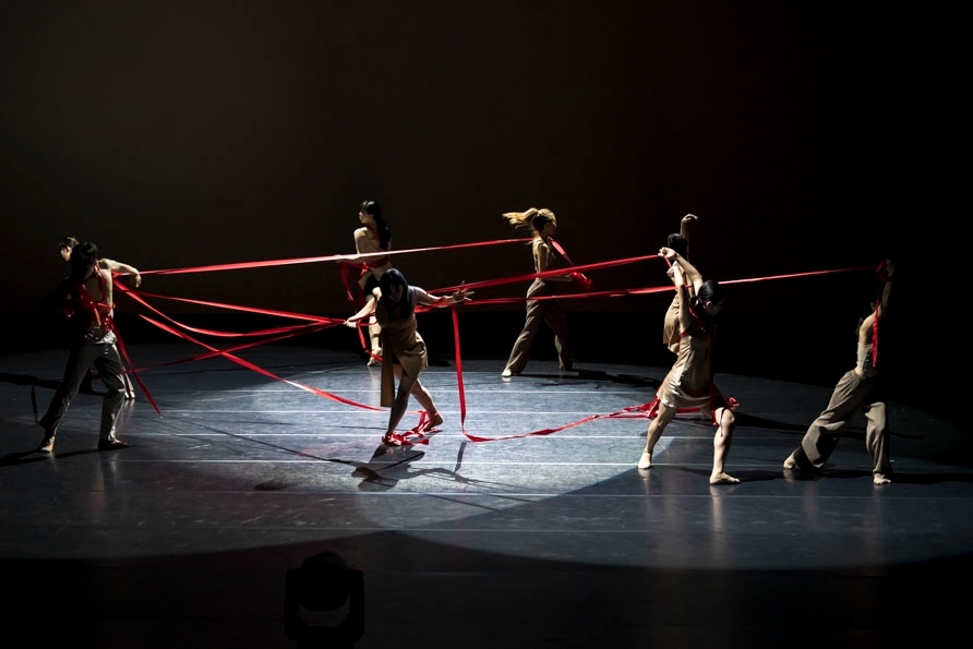 이미지 확대보기2장 : 개인의 존재; 각자의 삶은 기계적 움직임이 당연한 듯 보이는 대량사회의 건조한 열기 속으로 빠져들게 된다. 무용수들은 무대의 상수에서 하수로 직선적으로 움직이며, 자신의 몸에 엉킨 줄을 풀어내며 개인의 존재에 대해 탐색하는 과정을 보여준다. 무수한 섬세함을 거쳐야 하는 관계 표현 동작들이 만들어지고 나서야 세상은 만만한 곳이 아니라는 가정이 확인된다. 이 과정에서의 인간관계란 직선적이면서도 개인적인 형태로 매우 단순해 보인다. 무용수가 등장할 때마다 곁 조명이 켜지면서 각기 다른 삶의 길을 보여준다.