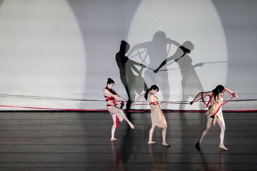 이미지 확대보기「혼선」은 4개의 장으로 구성된다. 유발 하라리의 <사피엔스>와 <호모 데우스>의 고민과 사유의 산책로에서 만나는 명제이다. 인간관계란 처음에 단순해 보이지만, 시간이 흐를수록 복잡해지고 ‘줄’도 점차 증가한다. 인간은 자신의 공간과 개인의 존재를 찾는 순간에도 인간관계망 속에 위치한다. 원치 않는 만남과 엮이고, 의도치 않은 매듭이 생기기도 한다. 사람 사이에 생성되는 연결고리가 복잡해지면서 ‘혼선’이 일어난다. 안무가는 인간관계에서 이런 일은 누구나 겪을 수 있음을 알리고 위로를 전한다.