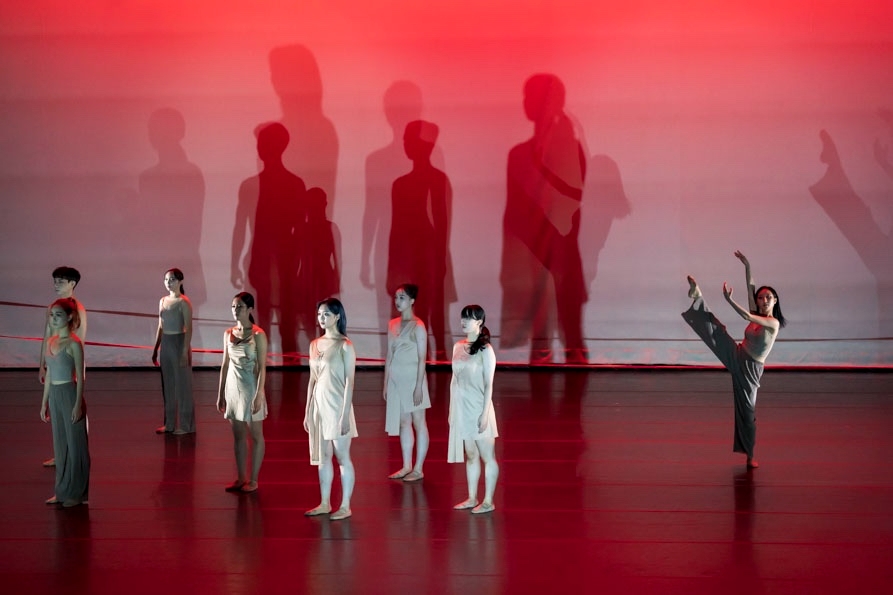 이미지 확대보기인간관계에 대한 안무가의 경험과 관점에 동참한 무용수 개개인의 경험담이 「혼선」에 보태진다. 「혼선」은 발레의 기본 동작 원리를 이용한 접촉 즉흥 방식을 활용하고, 무용수들의 군무는 인간관계 속의 의존적 모습을 표현한다. 안무가가 인간이 사회를 살아가는 방식과 유사하다고 생각한 접촉 즉흥은 순간의 반응과 선택의 자유를 중시한다. ‘리본 줄’은 인간이 태어난 순간부터 부여받은 복잡한 인간관계의 상징이다. 사람은 인간관계의 망에서 벗어나 완벽하게 자유로울 수 없고, 현실과 가상 세계에서도 마찬가지이다.