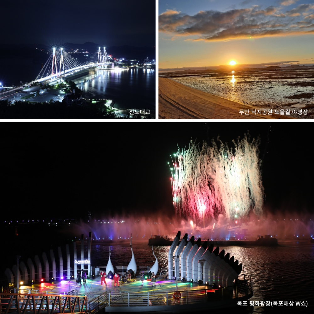 이미지 확대보기전라남도는 깊어가는 가을밤을 만끽할 야간 감성 여행지로 목포 평화광장, 무안 낙지공원 노을길 야영장, 진도대교&타워를 10월 이달의 추천관광지로 선정했다고 밝혔다.