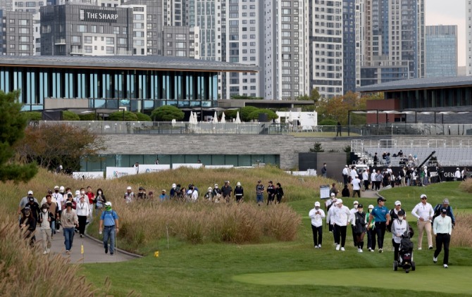 이미지 확대보기6일 인천 송도의 잭 니클라우스 골프클럽 코리아(파72·7438야드)에서 개막한 한국프로골프(KPGA)투어 제네시스 챔피언십.