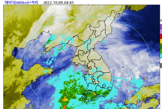 기상청은 이어 오늘부터 내일 사이 전국 비를 예보했다. 9일 04시 현재 전남권과 경남 남해안에는 비가 오는 곳이 있다. 이 비는 오늘(9일) 오전(06~12시)에 수도권과 충남권, 전북, 제주도, 낮(12~15시)에 그 밖의 전국으로 확대되겠다. 내일(10일) 새벽(00~06시)부터 아침(06~09시) 사이에는 소강상태를 보이는 곳이 많겠으나 오전(09~12시)부터 다시 비가 오는 지역이 많아지면서 서울.경기북부는 오후(15~18시)까지, 그 밖의 중부지방(강원동해안 제외)과 전라권, 경북서부에는 밤(18~24시)까지 산발적으로 비가 오는 곳이 있겠다. 오전(09~12시)까지 제주도에, 오후(12~18시)에 경남북서내륙에는 가끔 빗방울이 떨어지는 곳이 있겠다. 내일 경기동부와 강원도에 위치한 높은 산지(해발고도 1,000m 이상)에는 기온이 낮아 비 또는 눈이 오는 곳이 있겠다. 특히 오늘(9일) 늦은 오후부터 밤 사이에는 북서쪽에서 차고 건조한 공기가 유입되면서 대기가 매우 불안정해져 돌풍과 함께 천둥.번개가 치는 곳이 있겠다. 중부서해안과 경기북부, 강원영서북부 중심으로 우박이 떨어지는 곳도 있겠습니다. 또한, 내일(10일) 오후(12~18시)에도 수도권과 충남북부에 천둥.번개가 치는 곳이 있겠다.
