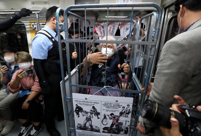 이미지 확대보기16일 법조계에 따르면 서울중앙지법 민사27단독 김춘수 부장판사는 공사가 박경석 전장연 공동대표 등 관계자 4명을 상대로 제기한 소송을 조정에 회부하기로 지난달 말 결정했다. 첫 조정기일은 다음달 3일에 열린다.