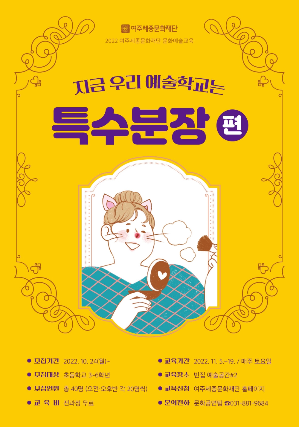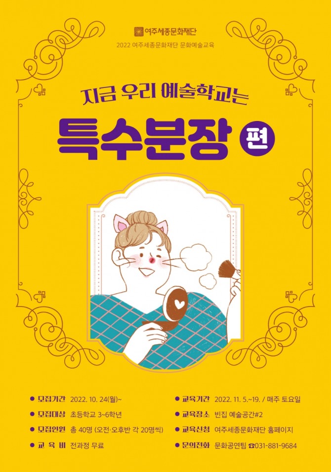 초등학교 3∼6학년으로 구성된 수강생들은 전문 특수분장사와 함께 특수분장의 활용, 자주 사용하는 기초 표현법 등 이론을 포함한 실기 수업에 참여하며, 창의력을 키우고, 또래 친구들과 협력하는 시간을 통해 감수성 제고, 공동체 의식 함양의 유익한 시간을 갖는다.