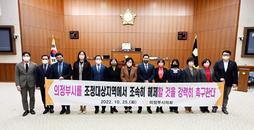 시의원들은 “의정부시가 조정대상지역 해제의 정량적 조건을 충족하는 상황임에도 불구하고, 조정대상지역으로 유지되면서 시민들이 체감하는 피해가 막심한 상황이다”라며 의정부시민의 재산권 보호와 지역 경제 활성화를 위하여 의정부시를 조정대상지역에서 즉각 해제할 것을 촉구했다.