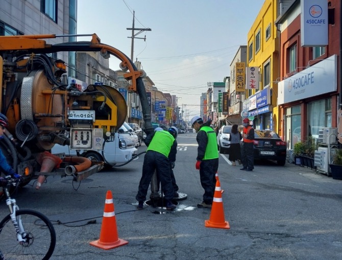 이미지 확대보기시는 합류식 하수관로 지역의 악취 저감을 위해 덕풍동과 신장동 등 원도심 지역의 하수 관로를 점검해 원인을 분석하고, 악취 발생 우려가 있는 2.2km의 하수관로에 대한 세정 및 준설을 완료했다.