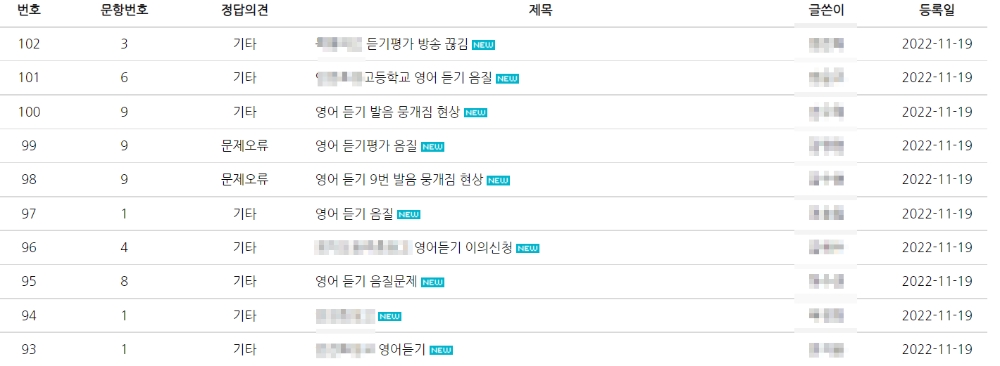 영어 영역 이의신청 103건 중 100건은 '음질' 문제