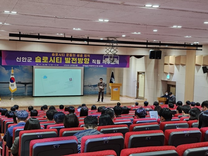이미지 확대보기전남 신안군(군수 박우량)은 22일 오후 2시 군청 공연장에서 2022년 국제슬로시티 공직자 역량강화교육을 실시했다고 밝혔다.