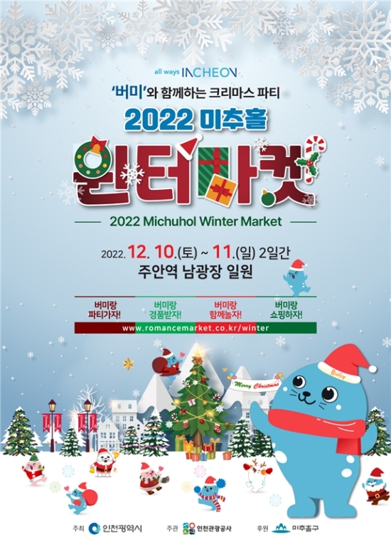올해는 인천시 캐릭터인 점박이 물범 ‘버미’와 함께하는 크리스마스 파티를 주제로 ‘버미’ 벌룬인형과 대형 크리스마스 트리, 빛의 터널 등 다양한 포토존이 준비돼 있다. 특히 지역상권과 함께하는 크리스마스 마켓과 크리스마스 소품 만들기 등 체험 프로그램이 마련된다.