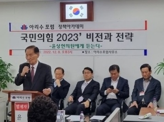 아리수포럼, 당 대표 출마자 윤 의원 초청 기조연설