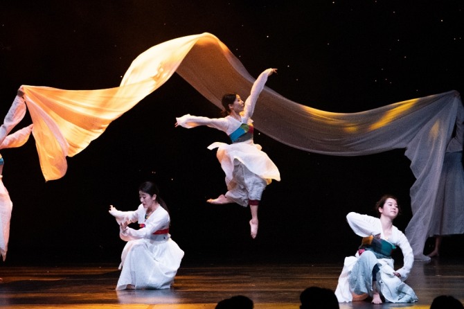 이미지 확대보기박명숙의 인기 레퍼토리 3부작은 「에미」(1996), 「유랑」(1999), 「윤무」(2011) 이다. 이 세 작품은 초연 이래 꾸준히 인기 있는 앙코르 공연 레퍼토리에 속한다. 「에미」는 현대사회의 이기심과 소통의 부재 속에 상처받은 영혼들을 달래면서 모성의 신비와 생명의 연속성을 춤의 언어로 형상화한 작품이다. 「유랑」은 한민족의 디아스포라를 진지하게 고찰하고 있고, 「윤무」는 여성과 예술에 걸쳐있는 박명숙의 삶을 투영한 작품이다. 서른에 가까운 「에미」를 지금 마주해도 싱그런 감(感)의 각(角)을 지내고 있으니, 이는 오로지 안무가 박명숙의 ‘정성의 결실’이다.