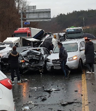 경찰이 확보한 블랙박스 등을 분석한 결과 운전자들이 브레이크를 밟는데도 도로 위가 워낙 미끄러워 차량들이 빙글빙글 회전하다가 다른 차량이나 중앙분리대 등을 들이받은 뒤에야 겨우 멈춰섰다.