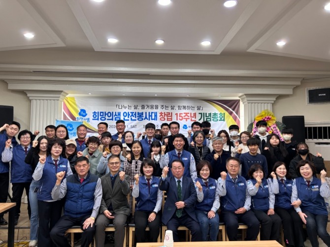 이미지 확대보기희망안전봉사대(이사장 유춘열)는 지난 11일 전북 전주시 완산구 중화산동 소재 ‘연가’에서 창립 15주년 기념 총회를 개최했다고 밝혔다.