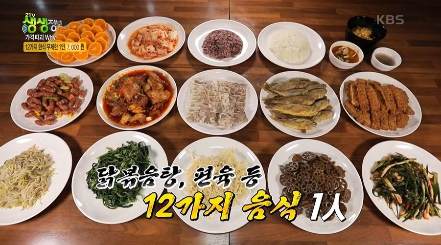 닭볶음탕, 편육, 돈가스 등 주요리 3개와 조기구이, 연근조림 등 12가지 한식 뷔페를 7000원에 즐길 수 있다.