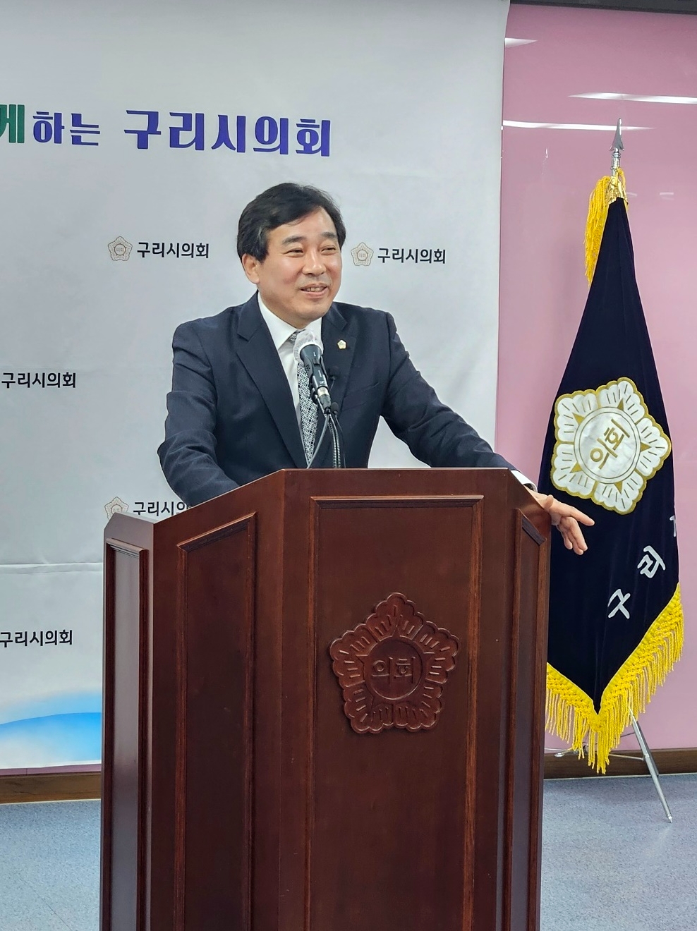 이미지 확대보기구리시의회 권봉수 의장은 22일 의회 멀티룸에서 의정 브리핑을 열고 2월 3차 의정브리핑과 함께 “한강횡단교량 명칭을 구리대교로 명명하기 위해 최선의 노력을 다할 것”이라고 밝혔다.