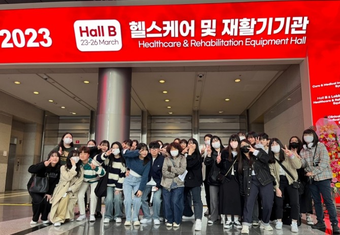 참관 지원에 선정된 광주여대 작업치료학과(이혜선 교수 외 재학생 30명)는 보건의료 미래학자인 제이미 메츨과 카카오헬스케어 황희 대표가 나선 ‘글로벌 헬스케어의 패러다임 변화와 미래’ 기조연설에 참관했으며, 동시에 개최된 KIMES(Korea International Medical & Hospital Equipment Show) 2023 국제의료기기 전시회에도 참여하여 진단장비, 재활기기, 보조기기 등 최첨단의 의료기기를 직접 체험할 수 있는 기회를 가졌다.
