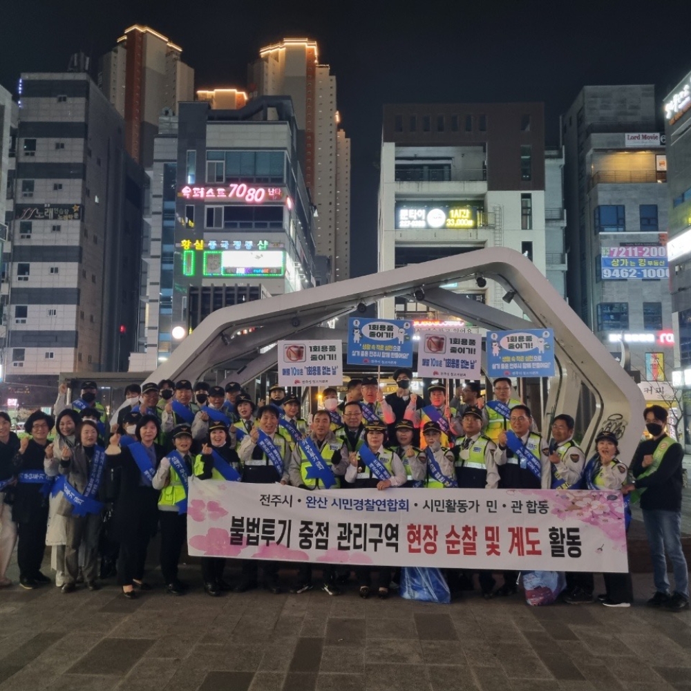 이번 합동 단속은 지난 3일 체결한 불법투기 지역 순찰 및 계도 활동 강화를 위한 ‘상습 불법투기 구간 순찰 및 계도 활동’ 업무 협약에 따라 시 청소지원과와 완산 시민경찰연합회, 일회용품 줄이기 시민 활동가 등 40여 명이 함께 참여했다.