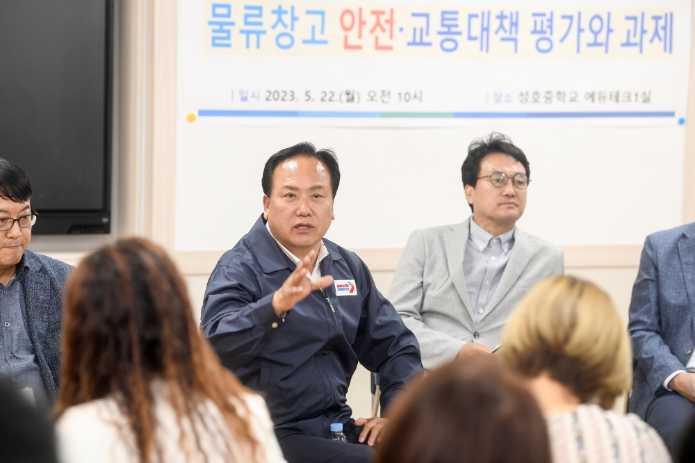 22일 이권재 시장은 성호중학교에서 열린 풍농 물류센터 관련 주민대책위원회 간담회에 참석해 학생 통학안전 개선사항에 대해 설명하며 이같이 말했다.
