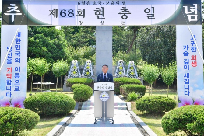 6일 장성공원 충혼탑 광장서 제68회 현충일 추념식… 보훈가족 등 300여 명 참석
