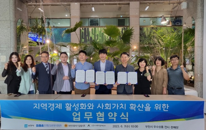 이번 협약 체결은 부천제조업경영자연합회, 부천사회적기업협의회, 부천시사회적경제센터 3개 기관 등과 함께 지역경제 활성화를 도모하고 제품판매 및 홍보를 강화해 사회적 가치를 확산하는 데 상호협력하고자 추진됐다.