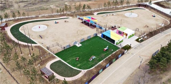 세계견종 안내판, 입구 상징 조형물, 강아지 터널, 물놀이 시설, 경사오르막내리막, 뫼비우스슬로프, 관리사무소, 실내교육장, 에어건, 배변수거함, 음수대, 그늘막, CCTV 등이 설치돼 있다.