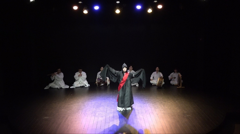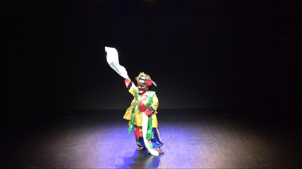 이미지 확대보기‘목멱예인’이 자아올린 칠작무(七作舞)를 되돌린다. ‘처용무’의 인물과 소품은 아직도 생생하다. 검은 얼굴에 짙은 눈썹, 육중한 모습, 느린 걸음에 한삼(汗衫)은 백초(白綃), 관모와 신에 붙어있는 붉은 장미와 복숭아가 붙어있다. 박(拍)이 경계하고 구음이 삶의 교훈을 설파한다. ‘상좌춤’은 흑백홍이 창의력을 발산하고 주조한다. ‘유월 생동’은 계절과 어울린 의상, 태평소와 노래가 청춘의 발랄한 움직임을 구가한다. ‘부채춤’은 김백봉을 떠올리게 하면서 부채에 관한 미학적 접근을 권유하였다.