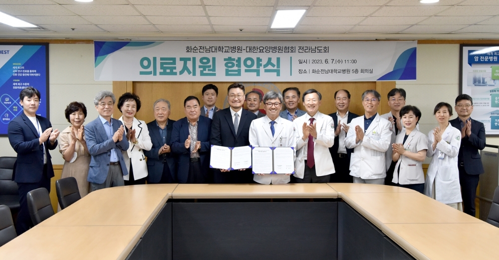 화순전남대병원 5층 회의실에서 지난 7일 열린 협약 체결식에는 정용연 병원장과 김인영 진료처장을 비롯해 대한요양병원협회 전라남도회 지승규 회장, 화순군립요양병원 범희승 병원장 등 11개 요양병원 관계자가 참석해 열렸다.