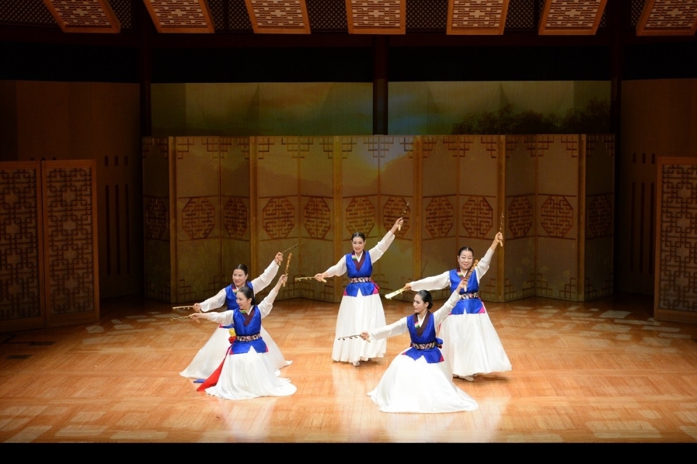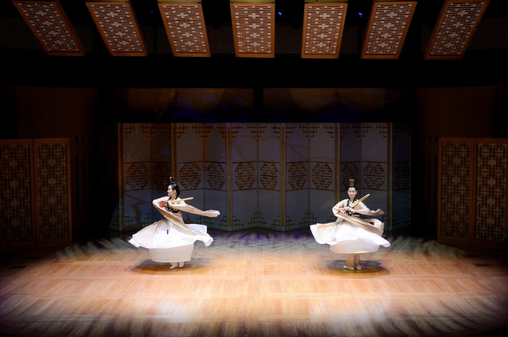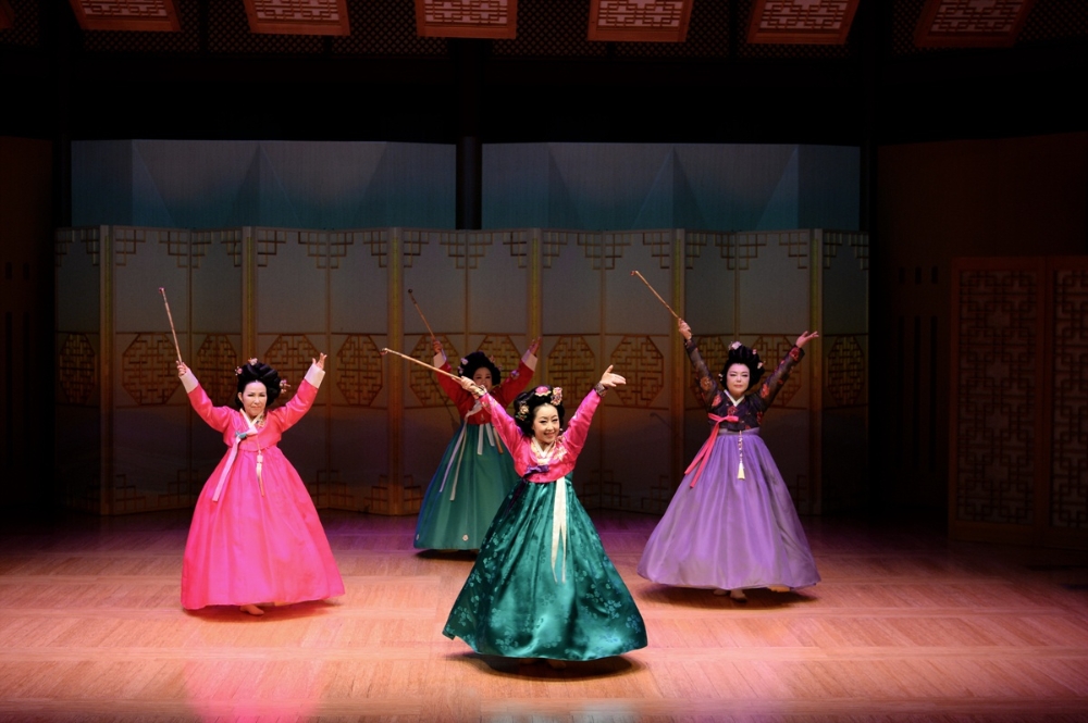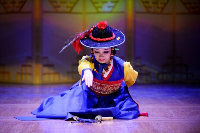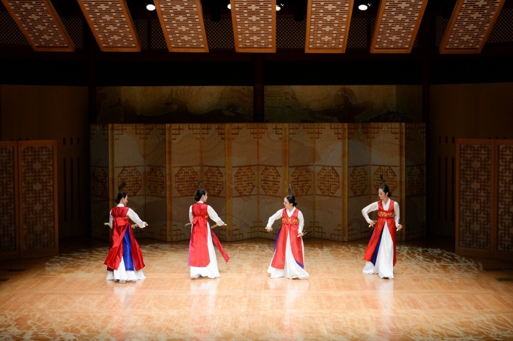 이미지 확대보기정기 공연은 1) 평양검무 2) 향발무 3) 쌍검대무 4) 사랑가 5) 부루나살풀이 6) 풍류랑무 7) 출진무 8) 권번의 노을 9) 경지 10) 터벌림의 맥 11) 평양기본무 12) ‘한마음춤’으로 구성되었다. 공연의 기본 축은 조선 영·정조에 틀을 갖춘 ‘평양검무’(13분)이다. 이 춤은 초대 이봉애 선생으로부터 임영순으로 이어지는 적통 예능 보유자의 춤으로 등재된다. 교방춤 가운데 평양 지역의 검무는 장단을 타며 섬세하며 완급의 춤사위가 호방하며 거침이 없다. 김홍도의 그림에 등장하고, 최초의 한류스타 무신(舞神) 최승희도 이 춤을 췄다.