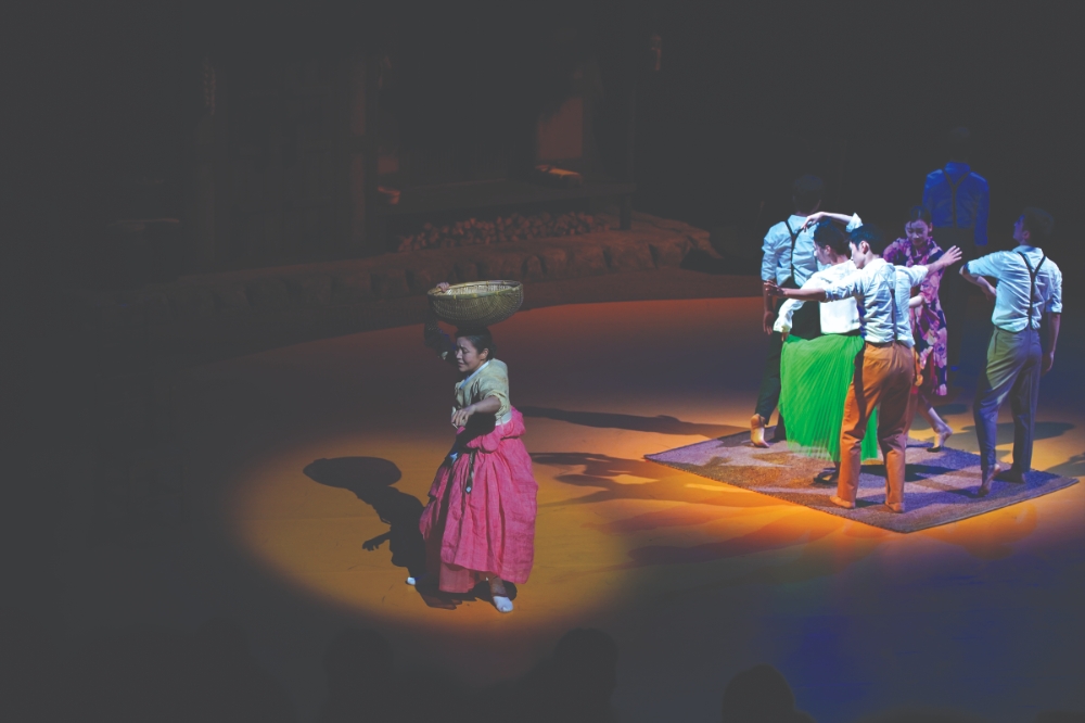이미지 확대보기반복되는 공연예술의 가장 중요한 핵심 사항은 반복과 이어감이다. 남·여 ‘무리춤’으로 ‘반복과 이어감’을 연출한다. 연기자들은 개인 기량과 조화의 묘를 연출해내면서 내공의 연습량을 보인다. “자신과 함께하는 모든 이들의 마음과 정신에 아름다움이 깃들고 상황에 적합한 아름다운 옷을 입고, 아름다운 생각을 하며, 아름다운 춤 가족이 된다. 이것이 춤이다.” 장현수는 원시와 현재와의 연결점을 찾으면서 디딤과 사위의 차이점을 파악하고자 한다. 연(蓮)밭의 사유는 결국 연(緣)의 소중함으로 연결된다.