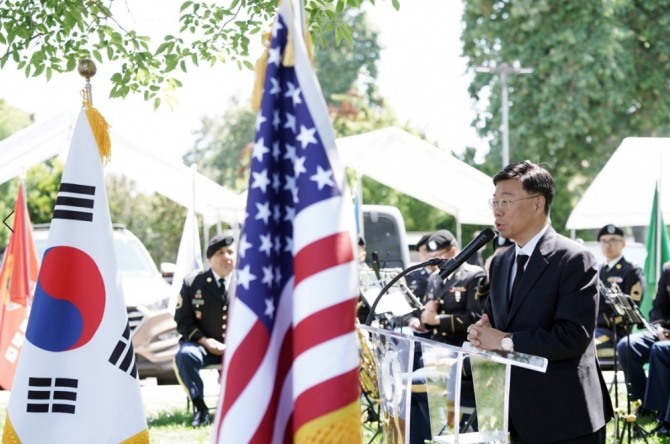 신 시장은 축사에서 “기념비에 담긴 영웅 한 분 한 분의 숭고한 용기와 희생에 경의를 표하고, 우리가 누리는 자유와 풍요는 참전용사의 피와 땀, 희생과 헌신 덕분에 가능했다는 것을 결코 잊어서는 안된다”고 강조했다.