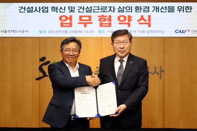 구체적으로 ▲적정임금제 및 기능등급제의 건설현장 적용 확대를 위한 연구 및 정보공유, 시범사업 운영 지원, 성과평가, 제도 홍보 협력 ▲적정임금제, 기능등급제, 전자카드제 활성화 등을 위한 데이터 플랫폼 조성 지원 ▲적정임금제 및 기능등급제 활성화를 위한 제도화 공동 추진 ▲SH공사 직접시공 시범사업 지원을 위한 정보 및 경험 교류 ▲건설기능 인력 양성 및 신규인력 촉진을 위한 기능등급제 연계 교육 활성화 ▲건설근로자 퇴직공제제도 성실이행 및 전자카드 단말기 설치 지원 등을 위해 상호 협력을 추진할 계획이다.