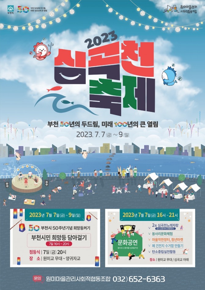 ‘심곡천 축제’는 원미지역 도시재생사업의 일환으로 추진된 주민 주도형 지역축제다. 2022년 도시재생사업이 종료된 후에도 시 승격 50주년 기념과 연계해 주민교류의 장을 조성하여 지역공동체 활성화를 목적으로 추진하는 사업이다.