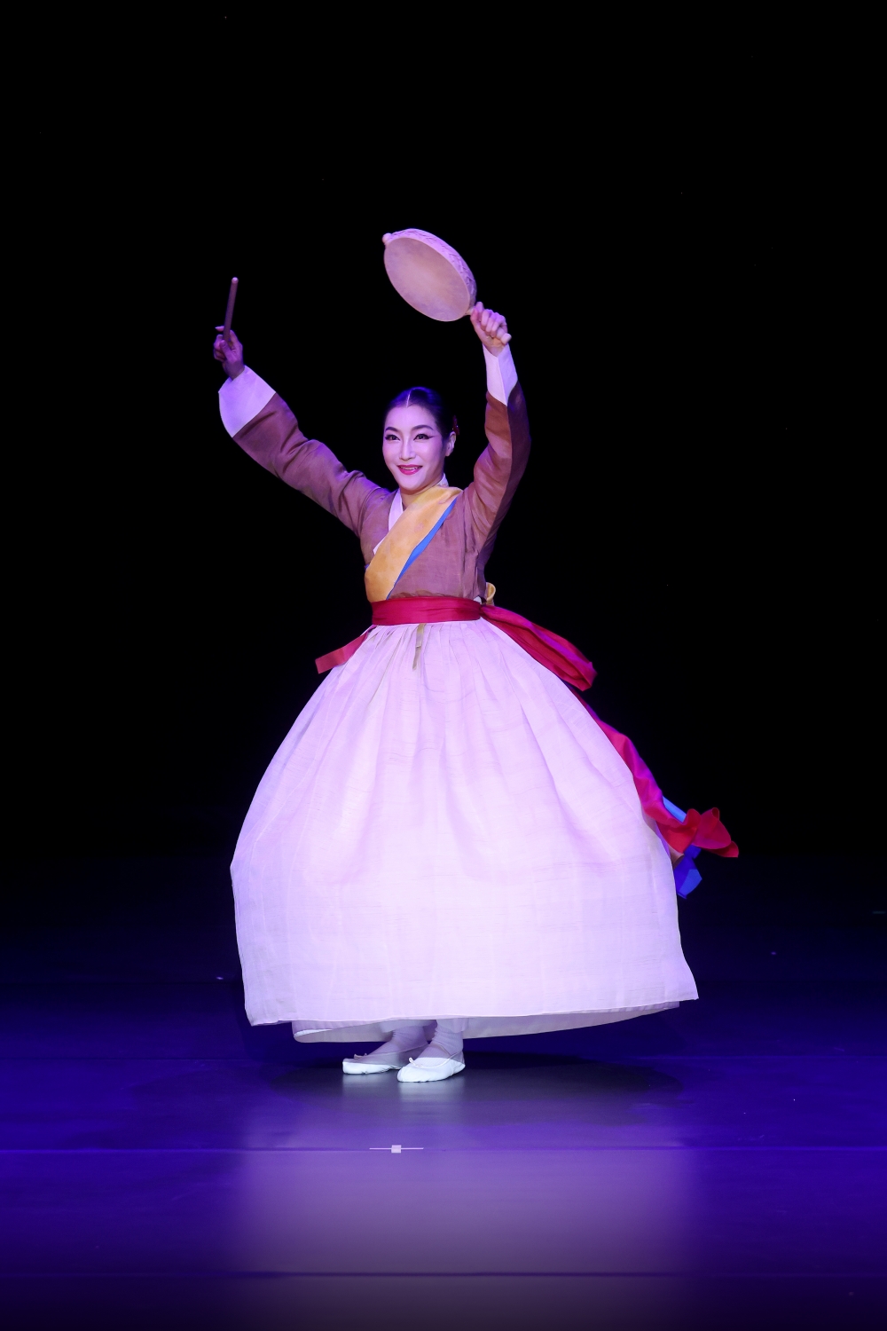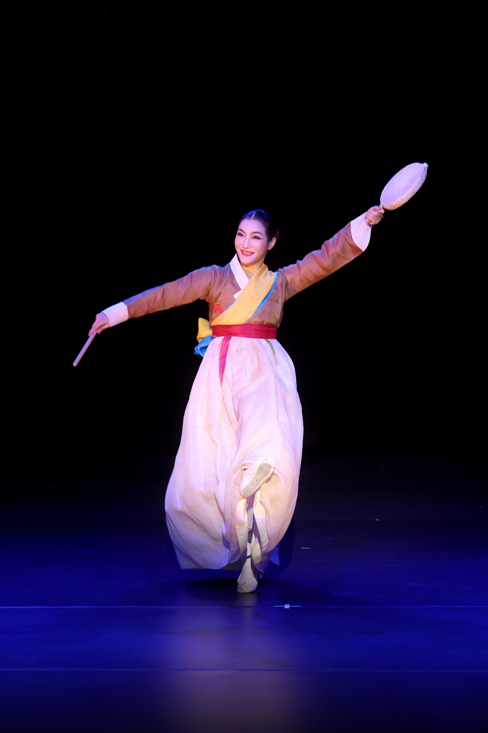 이미지 확대보기이소정의 「소고춤」은 사물놀이 연주와 태평소 반주에 맞추어 춤을 추었다. ‘치고, 달고, 맺고, 풀고’하는 장단에 맞추어 소고를 두드리며 흥신의 몸짓을 보여서 열렬한 환호를 받았다. 소고의 크기는 지역에 따라 차이기 있으며 지름 20㎝, 폭 4~5㎝쯤 된다. 북통 양쪽에 소가죽을 대어 제작한다. 손잡이가 북을 왼손으로 쥐고 오른손에 쥔 작은 채로 북의 중앙을 치면서 춤을 춘다. 최종실류 「소고춤」은 춤사위와 가락이 차별화되며 경쾌하면서도 절도 있게 몰아치는 춤사위가 무대화에 적합하게 구성되어 있다.