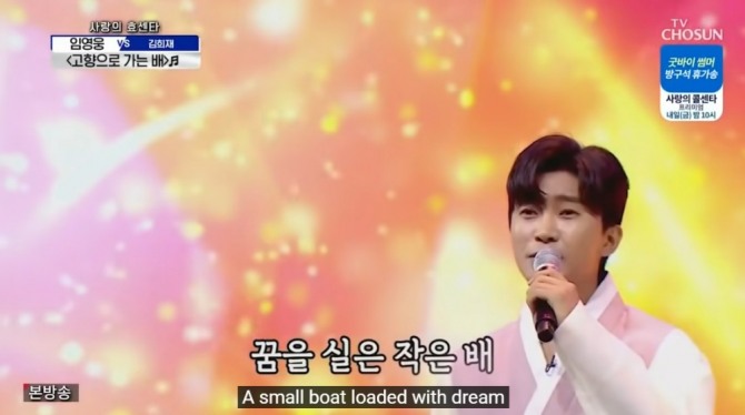 영상에는 TV조선 ‘사랑의 콜센타’에서 임영웅이 선보인 오진일의 ‘고향으로 가는 배’ 무대를 애절한 감성으로 불러 팬들의 감탄을 자아냈다.
