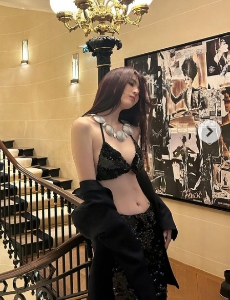 블랙 브라톱을 소화한 한소희의 이번 사진은 태그에 드러난 대로 패션 매거진을 촬영한 것으로 보인다.