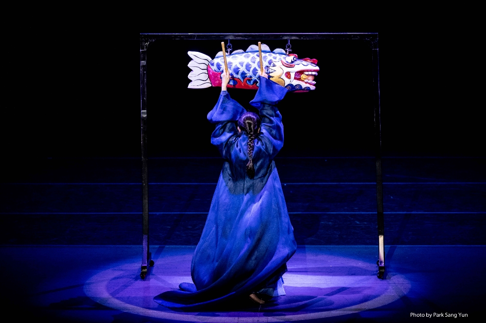 7월 5일(수), 국립국악원 예악당에서 장현수(들숨무용단 비상임안무가, 국립무용단 수석무용수) 안무의 『무문무』(無文舞)는 불교철학을 춤에 연결하여 수륙재(水陸齋)를 감행하는 느낌의 실존과 해탈의 걸친 춤으로 범인(凡人)의 잘못을 훈계하며 경각심을 불러일으키는 듯했다. 이동무대를 타고 오르내리는 채색 목어, 선지자(先智者, 장현수)는 텅 빈 나무 고기 배의 양쪽 벽을 북채로 쳐서 소리를 낸다. 물고기는 언제나 눈을 뜨고 깨어 있으므로 그 형체를 취하여 나무에 조각하고 북채로 치면서 수행자의 잠을 쫓고 혼미를 경책했다.
