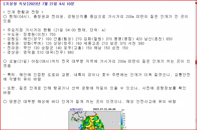 [기상청 속보]2023년 7월 21일 4시 10분