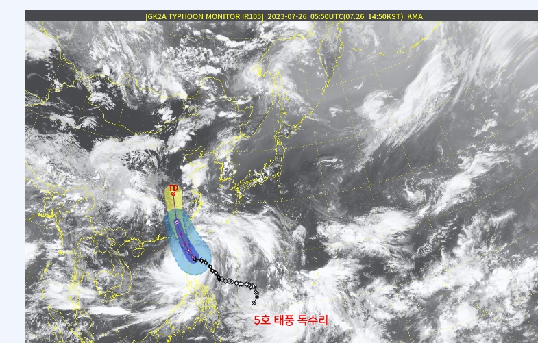5호 태풍 독수리 세력 급속 확산 이동 경로 한반도 서쪽 ,  기상청 호우주의보= 경기도(가평, 남양주, 오산, 하남, 용인, 이천, 안성, 여주, 광주, 양평), 충청남도(천안, 공주, 논산, 금산, 서천, 계룡), 충청북도(청주, 보은, 괴산, 옥천, 영동, 진천, 음성, 증평), 전라남도(담양, 장성), 전라북도(김제, 완주, 임실, 순창, 익산, 정읍, 전주), 경상북도(구미, 영천, 군위, 칠곡, 김천, 상주, 예천, 안동, 영주, 의성, 청송, 봉화평지), 경상남도(함양, 거창, 합천), 대전, 대구, 세종