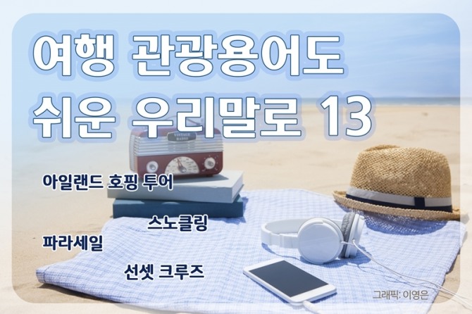 호핑 투어는 아일랜드 호핑 투어(island hopping tour)를 줄인 말로 볼 수 있다. 호프(hop)는 ‘깡충깡충 뛰다’의 뜻이다. 섬이라는 뜻의 아일랜드와 합친 아일랜드 호핑 투어는 섬 지역의 이곳저곳을 옮겨 다니며 스노클링·다이빙·낚시 등 해양 레포츠를 즐기는 것을 의미한다. 호핑 투어는 우리말로 바꾸기가 쉽지 않으니 아직 그런 시도조차 하지 않은 것 같다. 우리말로 풀어쓰기에는 말이 너무 길어지는 흠도 있다. 아일랜드 호핑 투어는 ‘섬 깡충 관광’ 또는 ‘섬 이동 관광’, 호핑 투어는 ‘깡충 관광’ ‘이동 관광’을 우리말로 할 것을 제안한다.