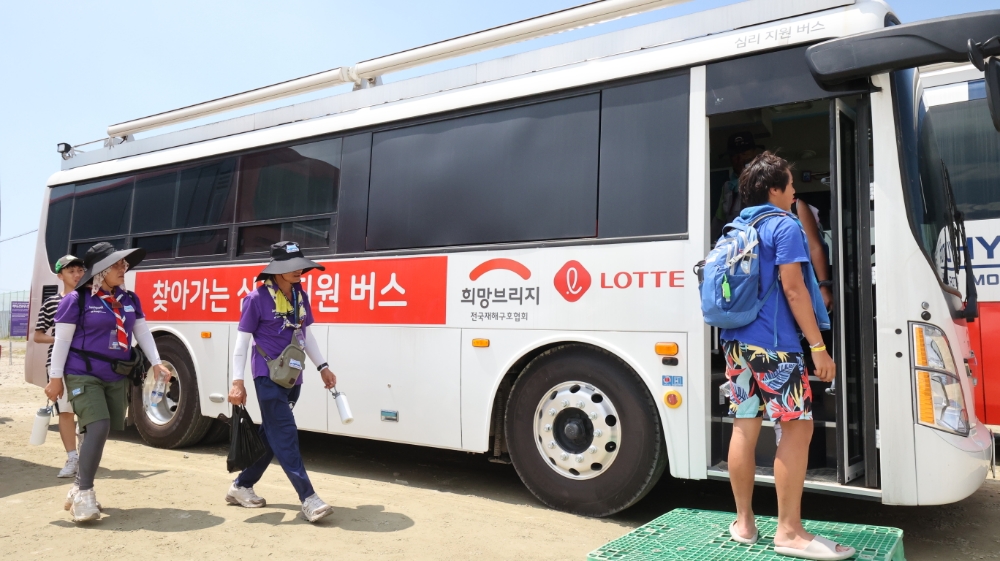 현대차그룹과 롯데의 후원으로 제작된 심신회복차량 역시 투입됐다. 희망브리지에 따르면 강력한 냉방 기능이 설치된 해당 차량은 고온 속 그늘이 없는 현장에서 어려움을 겪은 참가자들로 붐볐다고 한다.