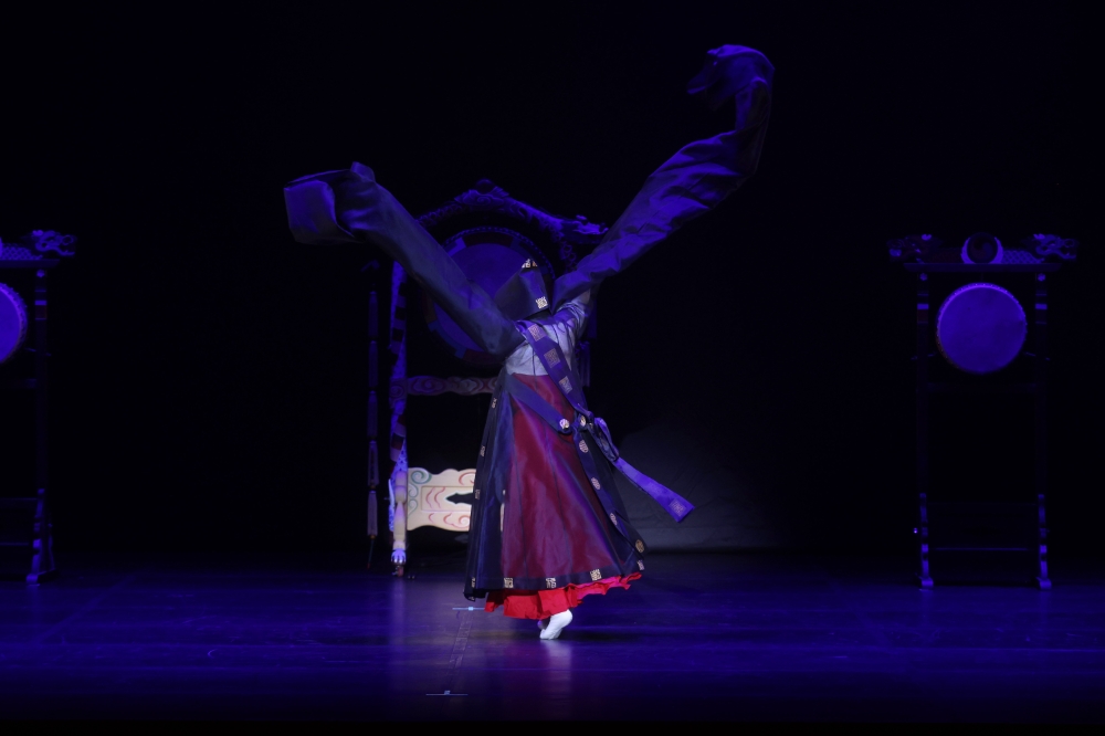 이미지 확대보기‘제2회 세계무형유산 대축제’의 경건한 춤 잔치의 시작인 ‘명작숨결’과 마지막인 ‘명불허전’에서 장옥주는 이매방류 '승무'로 선배 예인과 스승에 대한 예를 다했다. '승무'는 갈등하는 인간의 고뇌를 공감하고 세파를 극복하고 승화시키는 구도적 진리를 갈구한다. 장옥주는 열연으로 전통 춤의 전형을 예시했다. 문화적 전통의 형성자로서 장옥주는 전통 춤의 가치와 대중의 반응 사이에서 많은 에피소드를 만들어 왔다. 장옥주는 제13회 경기국악제 무용부문 대상(문화관광부장관상, 2006), 제37회 전주대사습놀이 전국대회 무용부문 장원(문화체육관광부장관상, 2011), 제15회 보훈 전국무용 경연대회 대통령상(2019)에 빛나는 연기력과 전국무용제 금상 안무자(충남팀, 2008)의 실력으로 '향혼예인전(香魂藝人傳)'을 조율해내며 '만고천추, 무(萬古千秋, 舞)'의 품격을 높이고 있었다. 의정부 지척의 강북에 이는 춤바람이었다.
