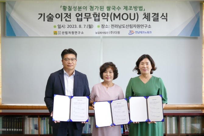 다원은 지난 2020년 기술을 이전받아 3년간 황칠쌀국수를 제조해 인터넷 쇼핑몰과 지역 농협 등에 판매하며 소비자에게 호평을 받았다.