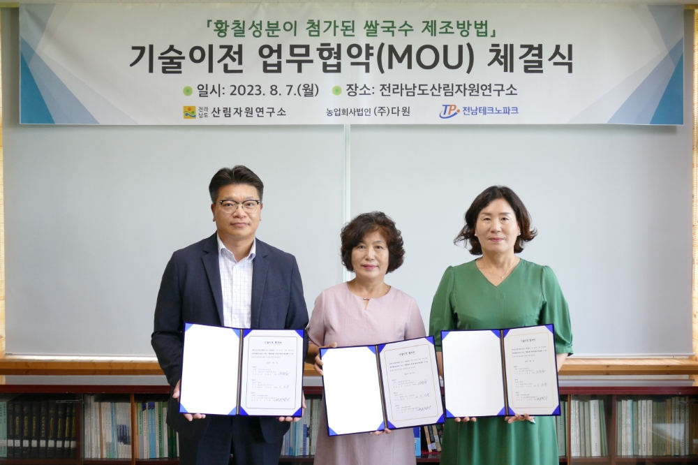 기술이전을 받은 두 기관은 “전남의 산림자원을 활용함으로써 해외 수출 판로 개척을 통한 전남의 산림 소재 홍보와 일자리 창출을 통한 지역 경제 활성화에 기여하겠다”고 밝혔다.
