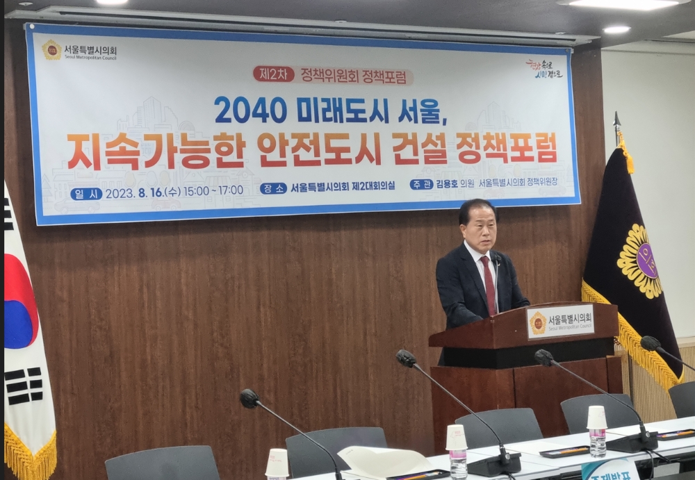 이번 행사를 주관하고 좌장을 맡은 김용호 정책위원장은 개회사를 통해 “서울은 명실상부한 글로벌 메가시티다”라며“ 서울시의 글로벌 도시경쟁력을 높이기 위해서는 탄소중립도시 실현에 많은 투자와 정책이 집중돼야 한다. 다양화 및 복합화 되면서 안전사고에 대비키 위한 지속가능한 안전도시 건설하는 방법을 강구할 시점이다”라고 말했다.