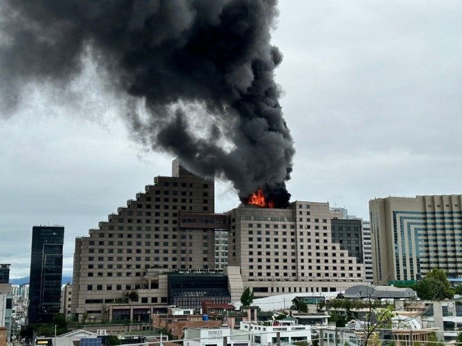 이미지 확대보기소방당국에 따르면 24일 낮 12시 40분께 서울 강남 역삼동 옛 르메르디앙 서울호텔 건물 옥상에서 화재가 발생했다.